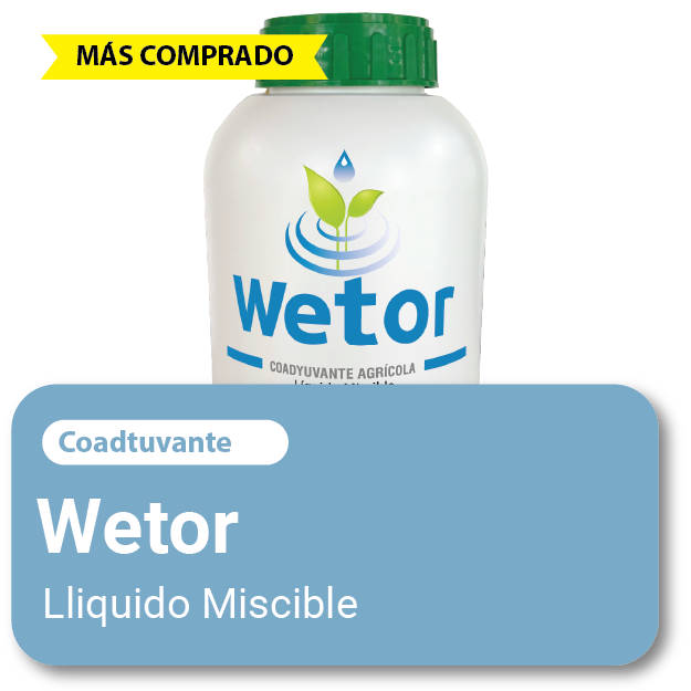 Coadyuvante Wetor Descrpción Presentación Composición Uso WETOR® es un coadyuvante súper humectante a base de poliéster de trisiloxano fácilmente biodegradable, diseñado para mejorar la eficacia de productos agrícolas. Induce la brotación, transporte de nutrientes y sustancias complejas que mejoran el desarrollo de la planta. Súper humectación en superficies hidrofóbicas como hojas. Mejor penetración cuticular de […]